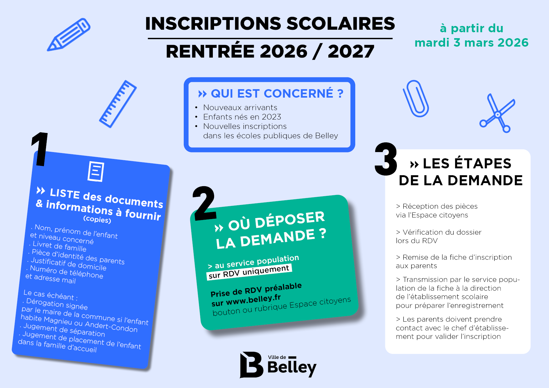Enfants concernés : enfants des communes de Belley, Saint-Champ, Magnieu et Andert-Condon et nouveaux arrivants.