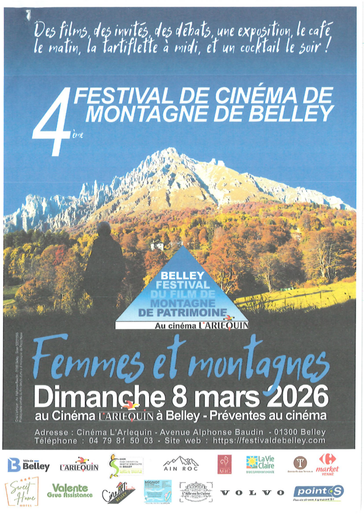 Le Cinéma L’Arlequin, en partenariat avec la Ville de Belley, le Club d’Animation Sportive des Retraités (CASR) et Ain Roc, organise la quatrième édition du Festival du Film de Montagne et de Patrimoine.