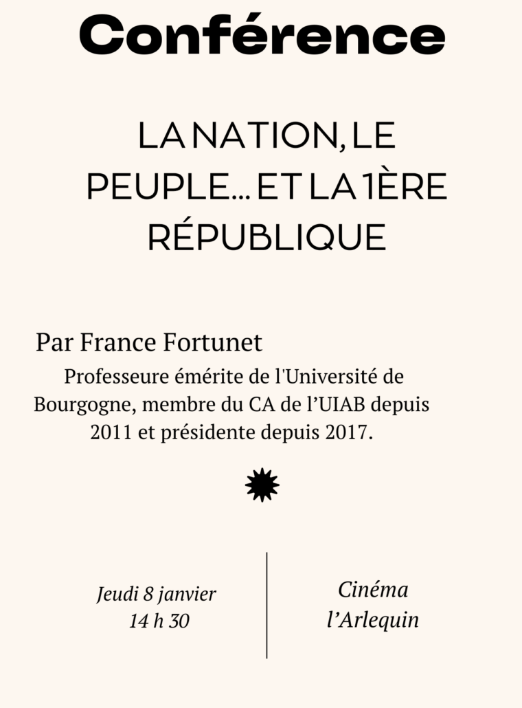 Vous êtes ici : Accueil1 / Evénements2 / Conférence sur « La Nation, le Peuple… et la 1ère République »...