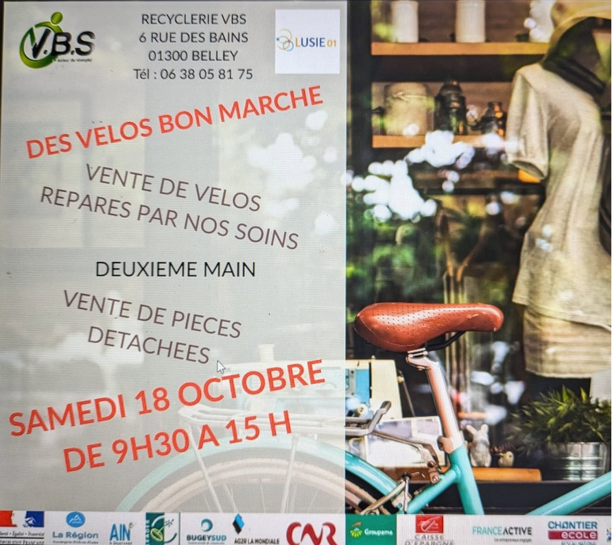 Vente de vélos de seconde main et pièces détachées à petits prix par la recyclerie Valoriste Bugey Sud