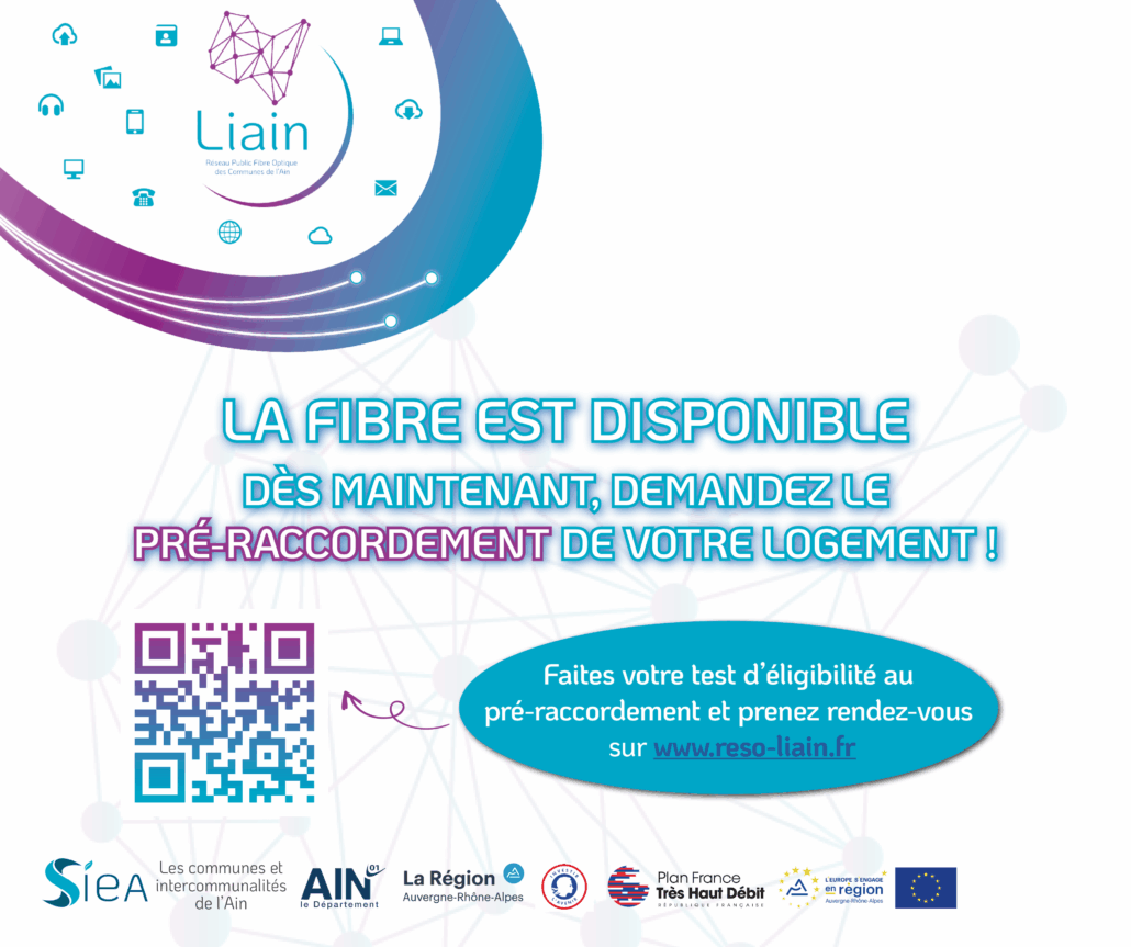 La commune a été fibrée par le SIEA (Syndicat Intercommunal d’énergie et de e-communication de l’Ain), organisme public propriétaire du réseau Li@in.