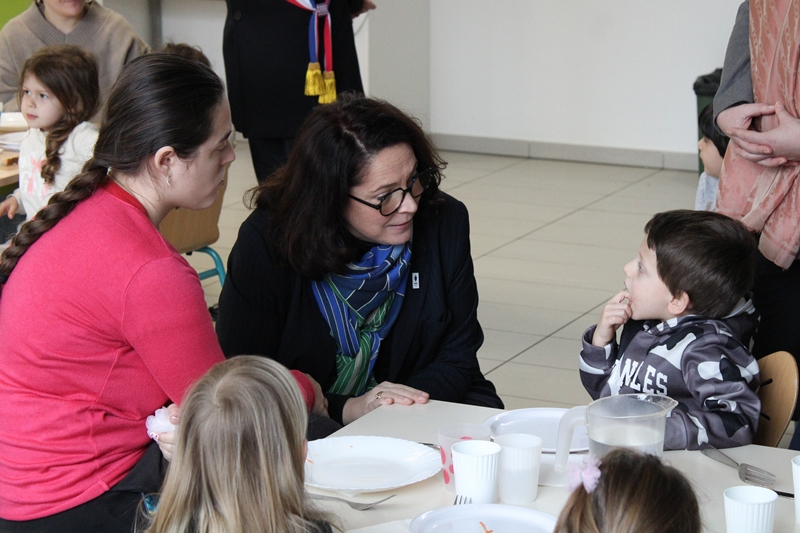 Marina Ferrari, ministre des Sports, de la Jeunesse et de la Vie associative, a été accueillie à Belley lundi 16 février. Au programme, la visite de l’accueil de loisirs situé à l’école Jean-Ferrat. Un bouquet de fleurs en papier, spécialement confectionné pour l’occasion par les petites mains, a été remis à la ministre.